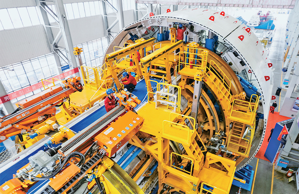 2024年11月22日,由鐵建重工、水電六局聯(lián)合打造的“江漢新石器號”隧道掘進機在長沙下線,這是迄今中國最大直徑敞開式巖石隧道掘進機。圖為當(dāng)日,在鐵建重工長沙第一產(chǎn)業(yè)園,工人在調(diào)試“江漢新石器號”隧道掘進機。 新華社記者 陳思汗/攝?