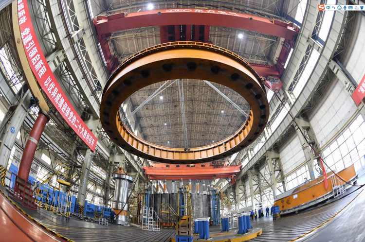 該導(dǎo)水機(jī)構(gòu)最大外徑為14.6米,裝配高度8米多,參與預(yù)裝的所有部件總重量超過1000噸。因尺寸大、重量大,該導(dǎo)水機(jī)構(gòu)在廠內(nèi)實(shí)現(xiàn)整體預(yù)裝,也創(chuàng)造東方電機(jī)水電制造史上多個(gè)“首次”。