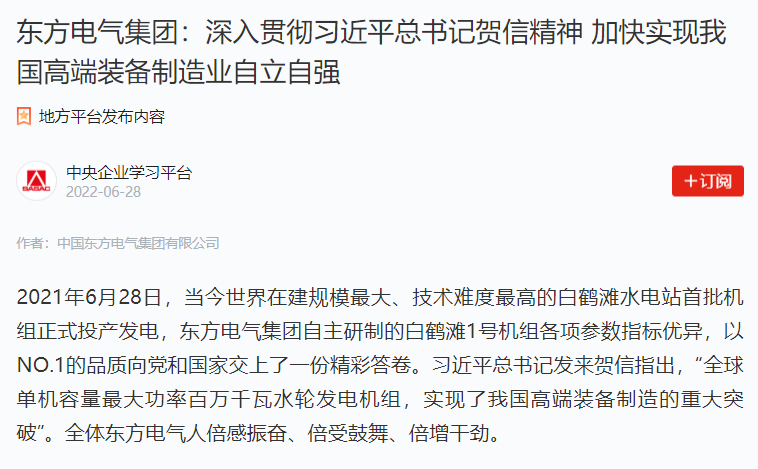 下一步,東方電氣集團(tuán)黨組將深入學(xué)習(xí)貫徹習(xí)近平總書記重要指示批示精神,踐行產(chǎn)業(yè)報(bào)國初心、擔(dān)當(dāng)制造強(qiáng)國使命,為國家安全和國民經(jīng)濟(jì)發(fā)展作出更大貢獻(xiàn),以實(shí)際行動(dòng)迎接黨的二十大勝利召開。