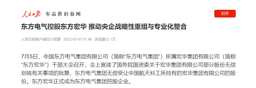 7月5日,中國東方電氣集團有限公司(簡稱“東方電氣集團”)所屬宏華集團有限公司(簡稱“東方宏華”)干部大會召開,會上宣讀了國務(wù)院國資委關(guān)于宏華集團有限公司部分股份無償劃轉(zhuǎn)有關(guān)事項的批復(fù),東方電氣集團無償受讓中國航天科工所持有的宏華集團有限公司的股份。東方宏華正式成為東方電氣集團控股企業(yè)。