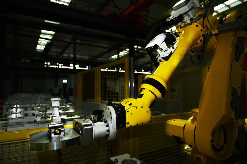 黑燈狀態(tài)下產(chǎn)線機(jī)器人依舊高效運(yùn)轉(zhuǎn)(攝影:劉崗)