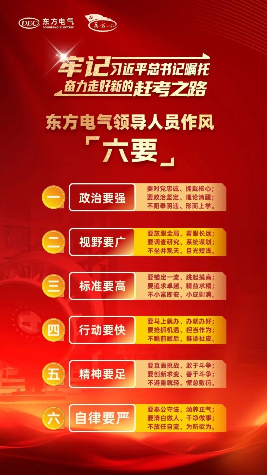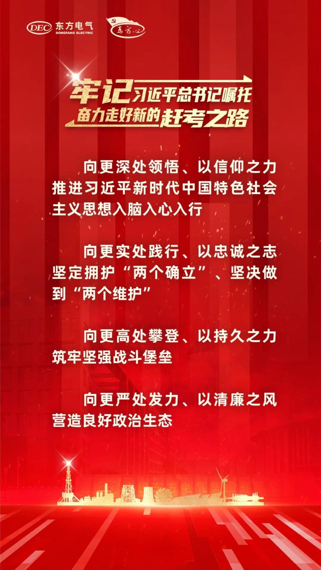 各級黨組織和全體黨員干部職工務必要以“東方心”黨建品牌為引領(lǐng),以黨建“三年攀高計劃”“登高而招”為牽引,向更深處領(lǐng)悟,向更實處踐行,向更高處攀登,向更嚴處發(fā)力,接續(xù)奮斗、勇毅前行,形成全集團共擔使命、共譜新篇、攜手奮進、萬馬奔騰的生動局面,以東方電氣的“穩(wěn)”“進”“立”為全國大局作出新的貢獻。