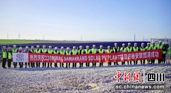 中新網(wǎng)四川新聞4月2日電 近日,由東方電氣集團(tuán)所屬企業(yè)東方國(guó)際總承包的烏茲別克斯坦撒馬爾罕光伏項(xiàng)目舉行最終光伏板安裝儀式。四川省副省長(zhǎng)左永祥,東方電氣集團(tuán)黨組成員、副總經(jīng)理李忠軍出席終板安裝儀式。