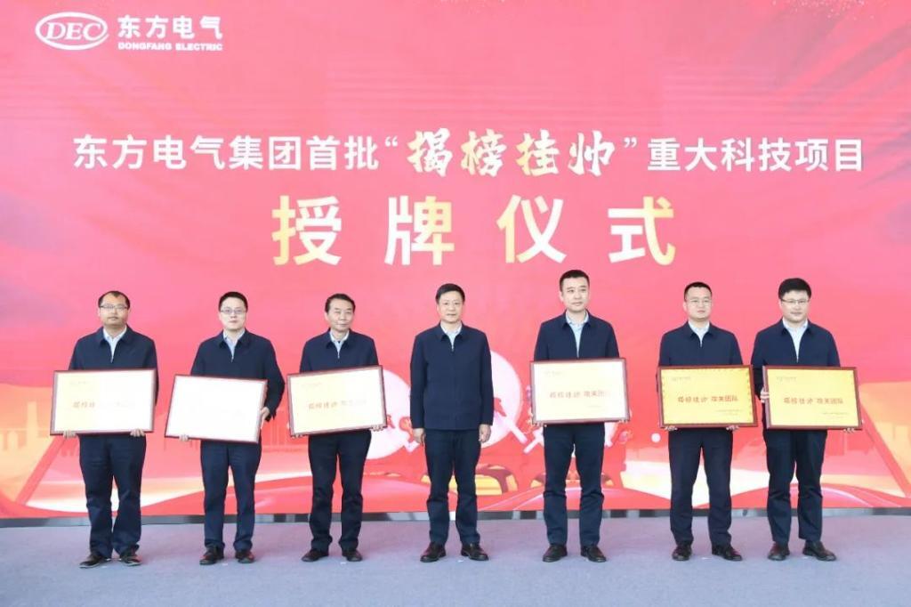 2022年3月23日,東方電氣集團(tuán)舉行首批“揭榜掛帥”重大科技項(xiàng)目授牌及啟動(dòng)儀式,集團(tuán)公司黨組書記、董事長俞培根向揭榜團(tuán)隊(duì)負(fù)責(zé)人授牌