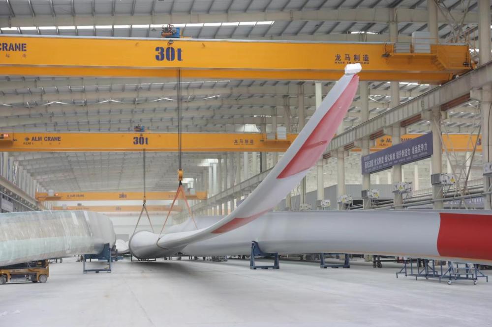 6月20日,東方風電包頭基地車間葉片生產(chǎn)現(xiàn)場。新華社 發(fā)