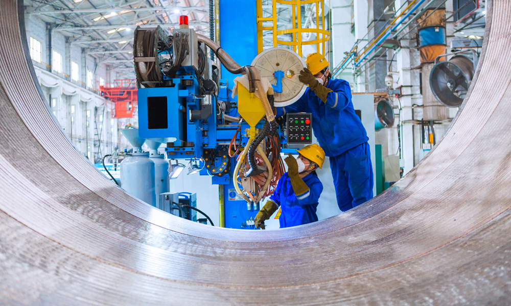 東方電氣集團(tuán)工作人員在利用自動(dòng)化設(shè)備焊接發(fā)電裝備鍋爐部件,產(chǎn)品加工完成后將被運(yùn)往貴州六盤(pán)水項(xiàng)目現(xiàn)場(chǎng)進(jìn)行組裝。該電廠投運(yùn)后,預(yù)計(jì)年發(fā)電量可超58.1億千瓦時(shí),將為區(qū)域能源結(jié)構(gòu)優(yōu)化提供重要支撐。