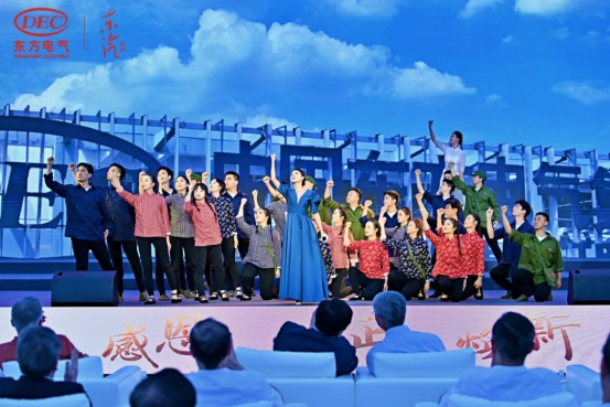 情景展演《脊梁之上》藝術(shù)地再現(xiàn)了東方電氣從堅苦卓絕的三線創(chuàng)業(yè),到經(jīng)歷磨難后的涅槃重生,再到新時代勇攀高峰、服務(wù)國家戰(zhàn)略的壯麗畫卷。