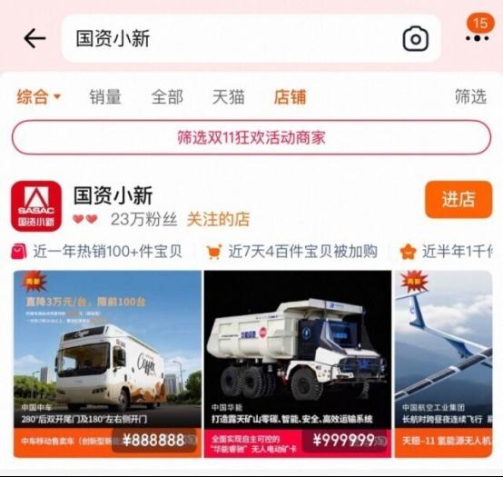 (圖:國資小新淘寶店今年雙11已上新,該店鋪已經(jīng)積累了23萬粉絲)