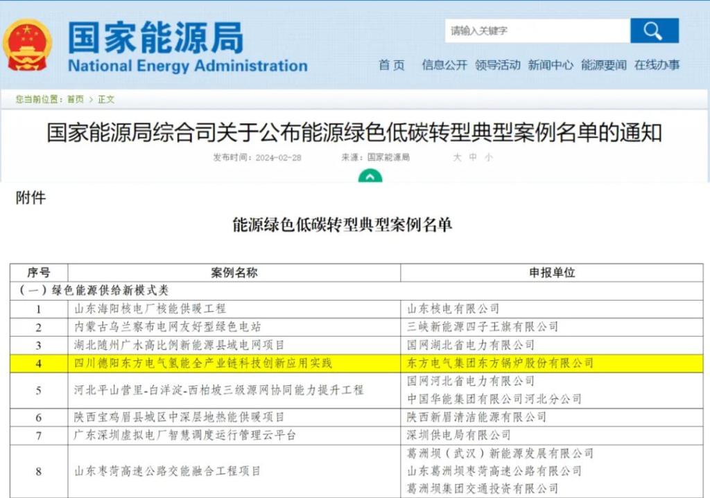 本網(wǎng)訊2月28日,國(guó)家能源局發(fā)布《關(guān)于公布能源綠色低碳轉(zhuǎn)型典型案例名單的通知》,由東方電氣集團(tuán)旗下東方鍋爐建設(shè)申報(bào)的四川德陽(yáng)東方電氣氫能全產(chǎn)業(yè)鏈科技創(chuàng)新應(yīng)用實(shí)踐從150余個(gè)案例中脫穎而出,成功入選國(guó)家能源綠色低碳轉(zhuǎn)型典型案例。