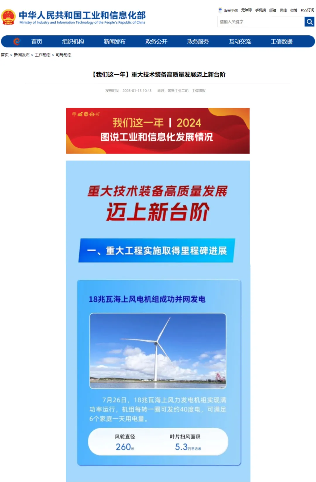 近日,工信部發(fā)布“【我們這一年】重大技術(shù)裝備高質(zhì)量發(fā)展邁上新臺階”列舉了2024年重大技術(shù)裝備取得的突出成就東方電氣“18兆瓦海上風(fēng)電機組成功并網(wǎng)發(fā)電”入選“重大工程實施取得里程碑進(jìn)展”