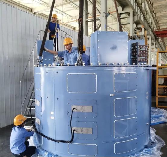 為了讓各工序“同頻共振”,就必須事先做好產(chǎn)線節(jié)拍的測算工作。董崢嶸帶著車間團(tuán)隊(duì)從優(yōu)化布局入手,他們把轉(zhuǎn)子裝配調(diào)到離動(dòng)平衡機(jī)最近的位置,來回轉(zhuǎn)運(yùn)時(shí)間節(jié)省1小時(shí);定子浸漆改用“三臺(tái)同浸”模式,生產(chǎn)效率提升33%的同時(shí)還降低了成本;轉(zhuǎn)子法蘭絕緣套筒換成分瓣式,每臺(tái)裝配時(shí)間縮短3小時(shí)。這些看似細(xì)微的調(diào)整,像給生產(chǎn)線打通了“任督二脈”。