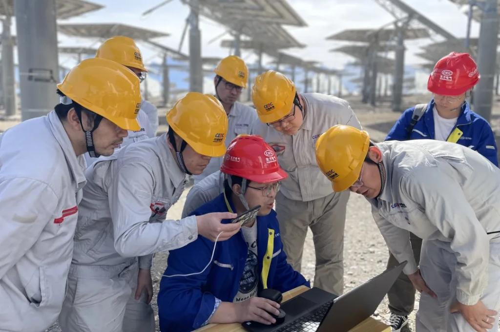 到哈密光熱項目時,來自不同專業(yè)崗位的16名青年領(lǐng)旗出征,扎根離鄉(xiāng)數(shù)千里的哈密光熱項目現(xiàn)場。這一去,又三年。項目初期,擺在團隊面前的第一個“攔路虎”是鏡場調(diào)試。要實現(xiàn)每一個鏡片都能穩(wěn)定“追隨”太陽,從單個鏡片到一組鏡片再到全場鏡片,需要不斷優(yōu)化方案,每次調(diào)試用時都在十個小時以上。時值酷暑,室外溫度高達50攝氏度,團隊成員的衣服濕了又干,干了又濕,結(jié)出了一層厚厚的鹽霜。