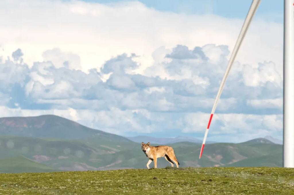 “低吼的野狼、翱翔的禿鷲、跳躍的野兔,還有轉(zhuǎn)動的風(fēng)機,在這荒涼的地方看久了還覺得挺和諧的。”黃斌說。