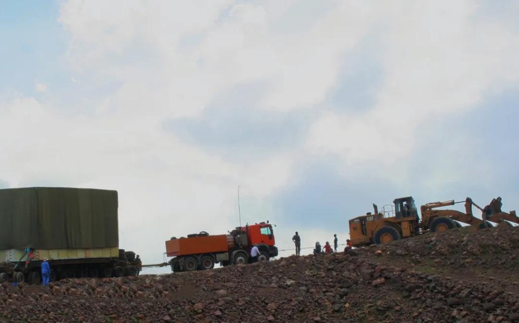 2014年6月,項(xiàng)目1號(hào)機(jī)的定子運(yùn)輸牽動(dòng)著所有人的心。由于當(dāng)?shù)氐缆废拗?,定子被分成兩瓣運(yùn)輸,單瓣定子的運(yùn)輸重量就高達(dá)150噸,高度超過(guò)5米。更揪心的是,最后100公里的進(jìn)場(chǎng)路況極其復(fù)雜。彼時(shí)正值雨季,盡管前期項(xiàng)目組用雙腳“丈量”了這100公里的道路,精確測(cè)量了每一個(gè)角度和轉(zhuǎn)彎半徑。但經(jīng)雨水沖刷后,道路損毀嚴(yán)重,原定的運(yùn)輸方案根本行不通。