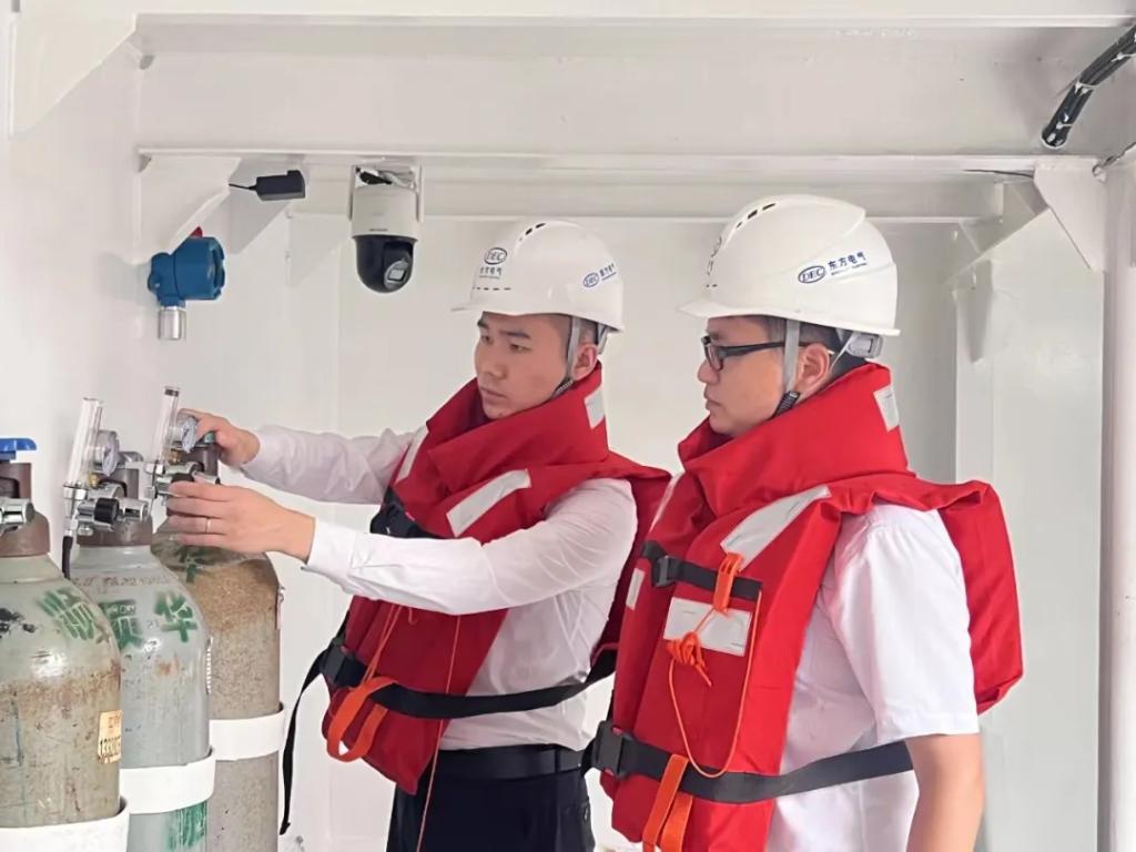 項(xiàng)目團(tuán)隊(duì)按計(jì)劃清晨4:00出海,準(zhǔn)備完成綠電制綠氫的關(guān)鍵切換,在忙碌了一天后,下午18:00,原本平靜的海面突然變得風(fēng)高浪急,試驗(yàn)平臺(tái)在波濤間搖曳,仿佛隨時(shí)都有可能被吞噬。就在這個(gè)危急時(shí)刻,對(duì)講機(jī)中傳來了緊急呼叫——風(fēng)機(jī)沉臺(tái)的電源接入端意外缺失了四個(gè)至關(guān)重要的線鼻子,直接阻斷了接電進(jìn)程。