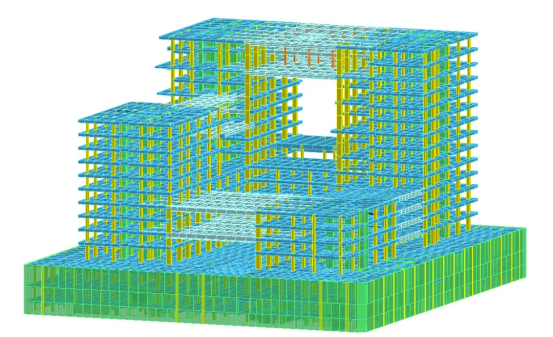 在犧牲建筑標(biāo)志性設(shè)計和面臨超限條款之間,項目團隊和設(shè)計院找到了一條平衡之路:經(jīng)過反復(fù)論證、優(yōu)化模型、完善應(yīng)力分析,通過采用提高建筑底部加強部位框架柱抗震等級、提高混凝土強度、合理設(shè)置后澆帶等超限設(shè)計的針對性措施,保證結(jié)構(gòu)抗震安全。