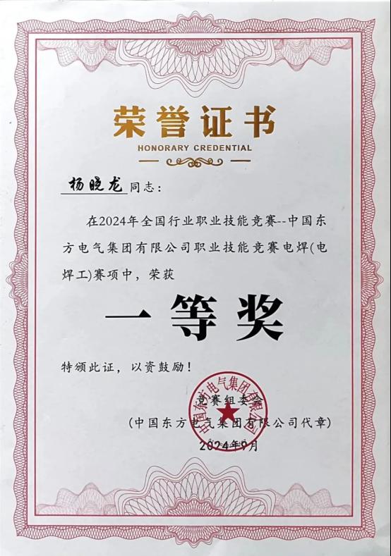 作為一名年輕的焊工,他曾斬獲全國行業(yè)職業(yè)技能競賽電焊項目冠軍、四川省青年職業(yè)技能大賽焊工團體賽第一名的好成績,并獲得中央企業(yè)優(yōu)秀共青團干部、四川省青年崗位能手、自貢市技術能手、自貢市青年五四獎章、東方電氣集團“勞動模范”等榮譽,也是東方電氣集團的青年技能拔尖人才、C類專家,精通手工鎢極氬弧焊、焊條電弧焊、CO?半自動氣體保護焊等焊接方法,擁有焊接資質十余項。