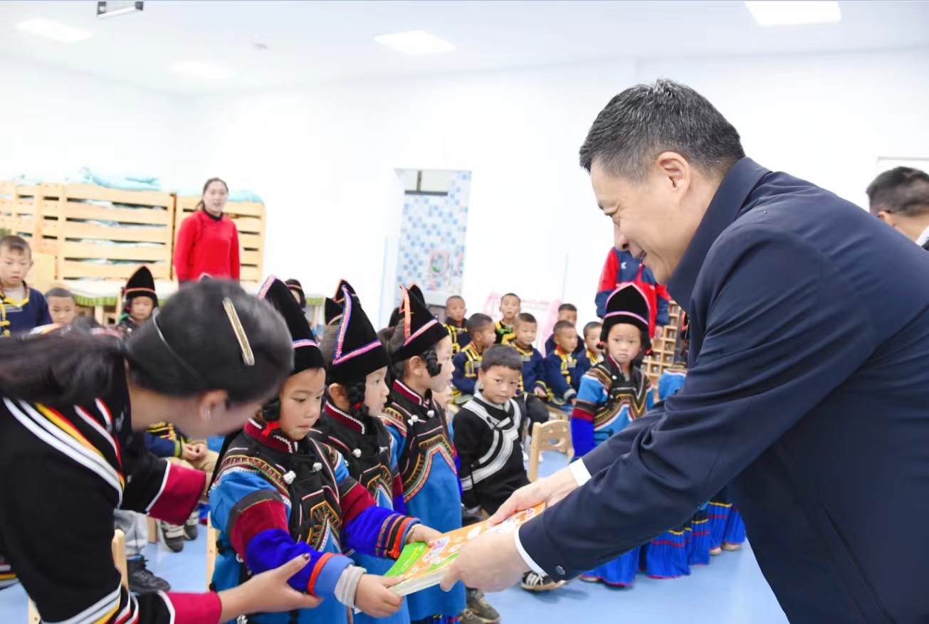 在東方電氣洛且博村幼兒園,俞培根深入了解幼教設(shè)施建設(shè)情況和當(dāng)?shù)剡m齡兒童學(xué)前教育情況,為幼兒園小朋友贈送書籍繪本。他指出,要發(fā)揮好幼兒園、幼教點作用,以真心真情和更大努力,呵護兒童茁壯成長,抓好“后繼有人”這個根本大計,讓鄉(xiāng)村教育賦能鄉(xiāng)村振興,把偉大事業(yè)推向前進。