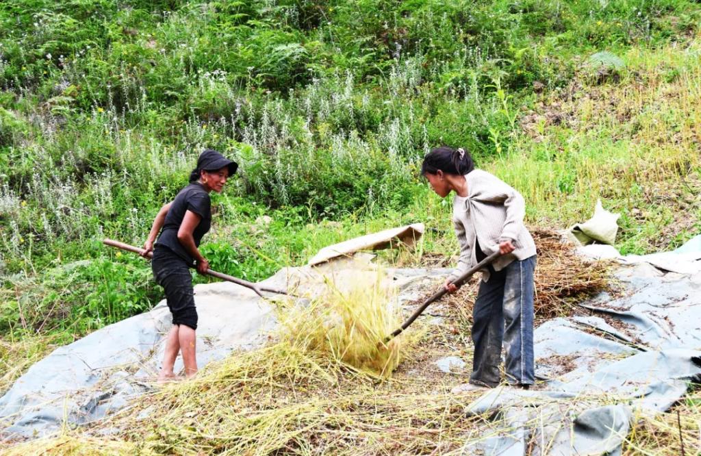 大哥名叫洛比吉莫,當(dāng)天凌晨3點(diǎn),他們一家三口便帶著干糧來(lái)到田里,開(kāi)始割蕎。原來(lái),收蕎的時(shí)間是非常講究的,割蕎必須在上午10點(diǎn)前完成,而打蕎則要在10點(diǎn)以后,讓太陽(yáng)把蕎堆曬干,打起來(lái)省力?!敖衲晡覀兗曳N了5畝苦蕎,留足家里吃的,剩下的都能賣(mài)到苦蕎加工廠。”洛比吉莫一邊擦拭著汗水一邊說(shuō)道。