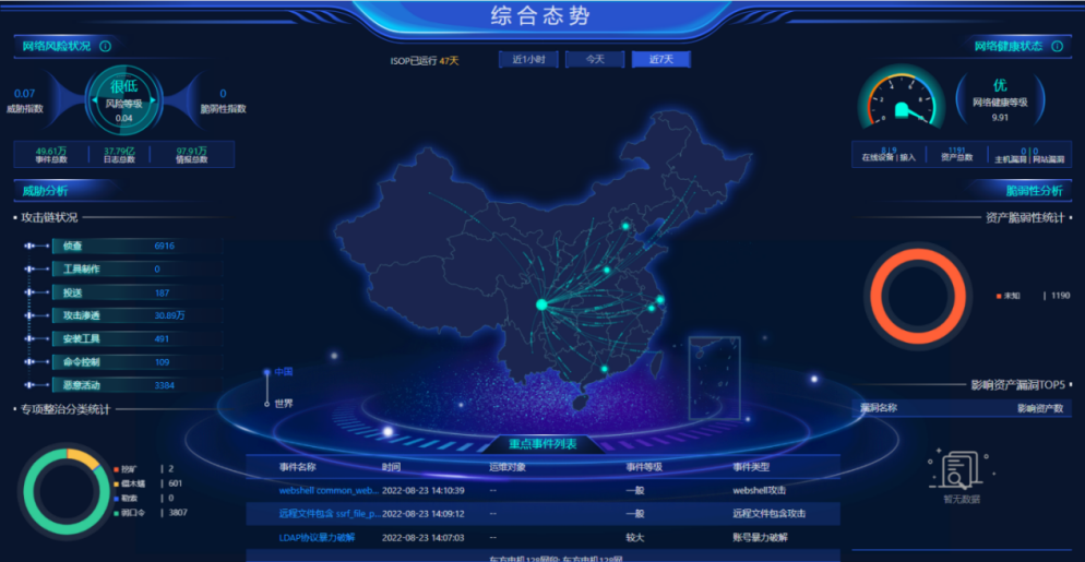 網(wǎng)絡(luò)安全態(tài)勢(shì)感知平臺(tái)上線運(yùn)行,網(wǎng)絡(luò)資產(chǎn)底數(shù)更加清晰,實(shí)現(xiàn)對(duì)網(wǎng)絡(luò)安全威脅的全面監(jiān)控,圍繞“及時(shí)發(fā)現(xiàn)漏洞、及時(shí)有效處置漏洞”兩個(gè)關(guān)鍵,實(shí)時(shí)發(fā)現(xiàn)并處置網(wǎng)絡(luò)風(fēng)險(xiǎn)、攻擊,動(dòng)態(tài)調(diào)整安全策略。