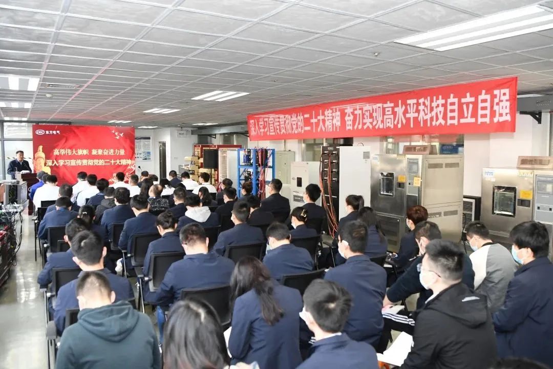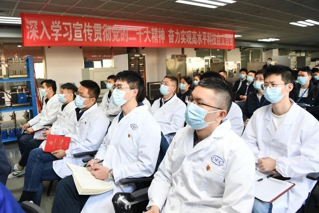 本網訊 為引導全集團廣大干部職工切實把思想和行動統(tǒng)一到黨的二十大精神上來,根據東方電氣集團黨組統(tǒng)一部署,11月22日,集團公司“高舉偉大旗幟 凝聚奮進力量”黨的二十大精神宣講隊首場宣講報告會在東方研究院新能源電池測試實驗室舉行,用“行走的課堂”講述“我們身邊”拼搏奮進爭先的鮮活故事,激勵科研工作者以實干搶抓創(chuàng)新先機,為加快實現(xiàn)高水平科技自立自強貢獻“東方”力量。