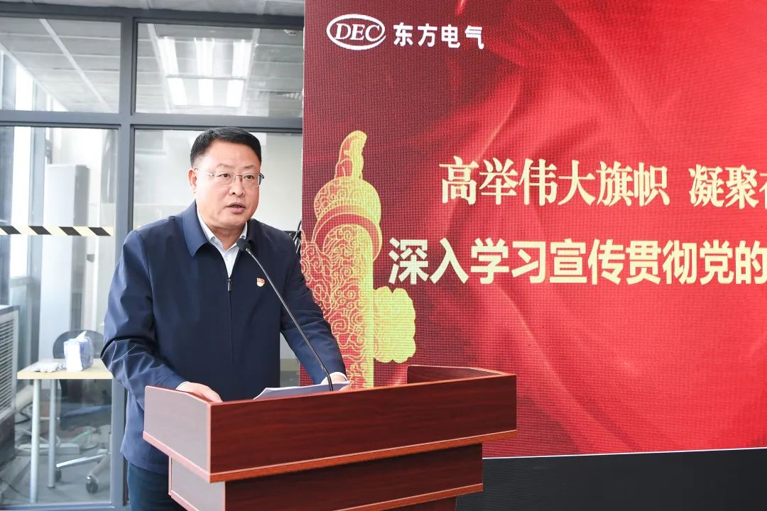 集團公司黨組副書記、董事宋致遠在講話中指出,新時代十年,在以習近平同志為核心的黨中央堅強領導下、在習近平新時代中國特色社會主義思想指引下,東方電氣集團全體黨員干部職工堅定不移聽黨話、矢志不渝跟黨走,在推進科技自立自強、加快轉變經濟增長方式上爭做排頭兵,有力服務了黨和國家工作大局。舉行系列宣講報告會,旨在推動黨的二十大精神學習宣傳貫徹在全集團走深走實,以榜樣力量高揚“東汽精神”鮮艷旗幟、鍛造“同·創(chuàng)”文化價值內核,為加快建設世界一流企業(yè)竭誠盡智。