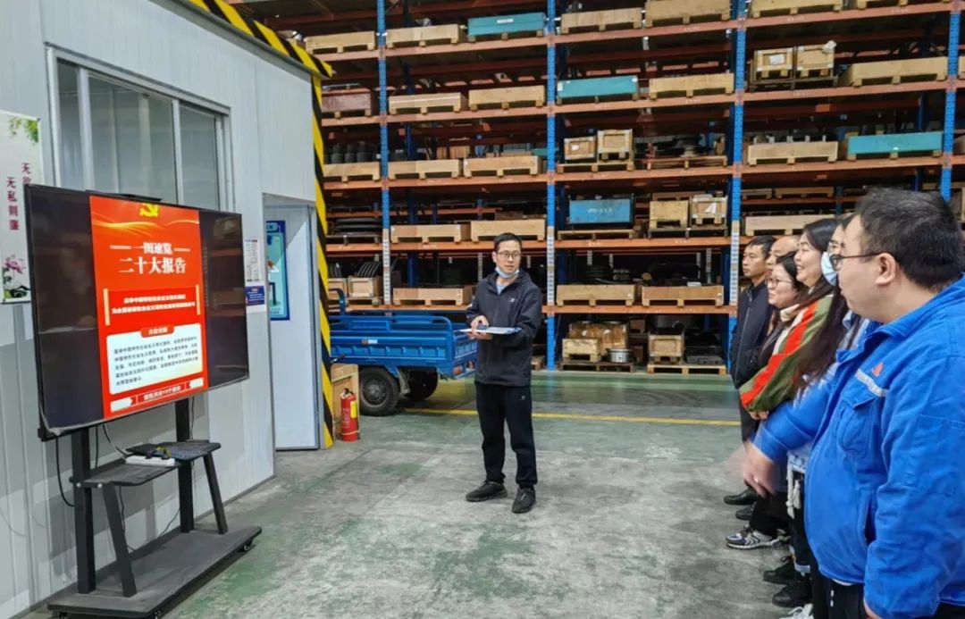 東方宏華采購儲運(yùn)設(shè)備黨支部三支黨小組以黨的二十大提出的新思想新論斷、作出的新部署新要求為主要知識點(diǎn),組織黨員積極討論,熱烈發(fā)言討論;生產(chǎn)現(xiàn)場通過大屏等形式圖文并茂向干部職工展示黨的二十大報告內(nèi)容,營造濃厚的學(xué)習(xí)氛圍,切實(shí)推動學(xué)習(xí)宣傳貫徹黨的二十大精神走深走實(shí),增強(qiáng)了“永遠(yuǎn)跟黨走、奮進(jìn)新征程”的信念,促進(jìn)黨員干部職工將黨的理論與實(shí)際工作相結(jié)合,提升工作效率,扎實(shí)推動年度目標(biāo)任務(wù)完成。