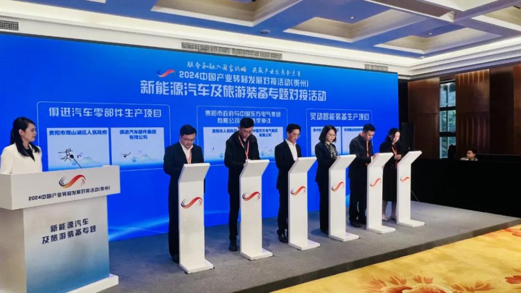 2024中國產(chǎn)業(yè)轉移發(fā)展對接活動(貴州)以“服務和融入國家戰(zhàn)略 共贏產(chǎn)業(yè)發(fā)展新未來”為主題,包括1場綜合活動和4場專題活動,圍繞資源精深加工及綜合利用、先進裝備制造、大數(shù)據(jù)電子信息、特色輕工等貴州特色優(yōu)勢產(chǎn)業(yè),開展地市推介、政企對接、實地考察、專家解讀、項目簽約等。在新能源汽車及旅游裝備專題對接活動中,東方電氣集團與貴陽市人民政府簽署了戰(zhàn)略合作框架協(xié)議。