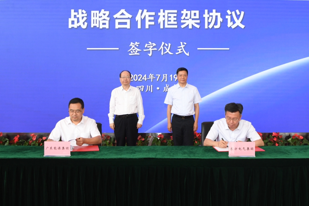 7月19日,東方電氣集團黨組書記、董事長俞培根與廣東能源集團黨委書記、董事長張帆在集團總部舉行會談,并見證雙方簽署戰(zhàn)略合作框架協(xié)議。東方電氣集團黨組成員、副總經(jīng)理李忠軍,廣東能源集團黨委委員、副總經(jīng)理劉寧寧代表雙方簽字。