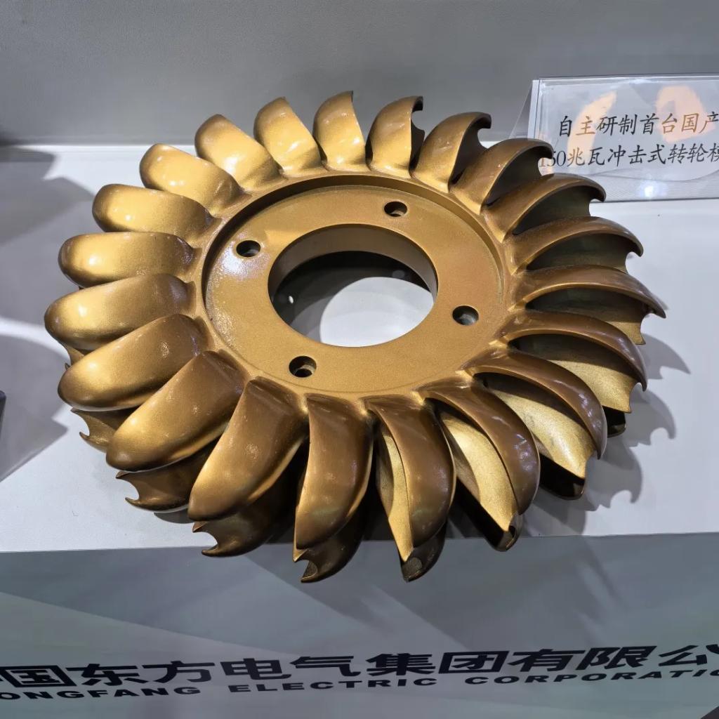 東方電氣自主研制的首臺國產(chǎn)化150兆瓦沖擊式轉(zhuǎn)輪,重約20噸,最大直徑約4米,打破了國外長期壟斷,實現(xiàn)了自主技術(shù)在沖擊式水電領(lǐng)域從“0到1”的突破。