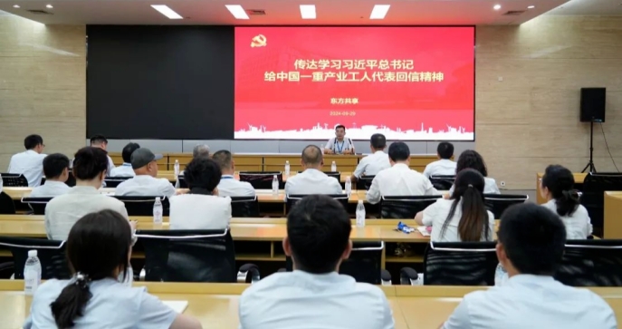 本網(wǎng)訊 近日,習(xí)近平總書記給中國一重產(chǎn)業(yè)工人代表回信,對產(chǎn)業(yè)工人予以親切勉勵,對中央企業(yè)提出殷切希望。作為能源裝備領(lǐng)域“國家隊(duì)”,東方電氣集團(tuán)各級黨組織迅速響應(yīng)、認(rèn)真學(xué)習(xí),掀起學(xué)習(xí)貫徹習(xí)近平總書記重要回信精神熱潮。