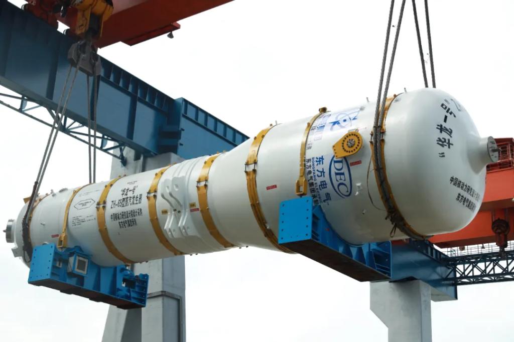 2017年10月17日,由集團(tuán)公司承制的全球首堆“華龍一號(hào)”蒸汽發(fā)生器在東方重機(jī)順利完工發(fā)運(yùn)。該設(shè)備重達(dá)390噸,高22米,功率1150兆瓦,標(biāo)志并見證著中國(guó)第三代核電設(shè)備自主設(shè)計(jì)制造能力的成熟。