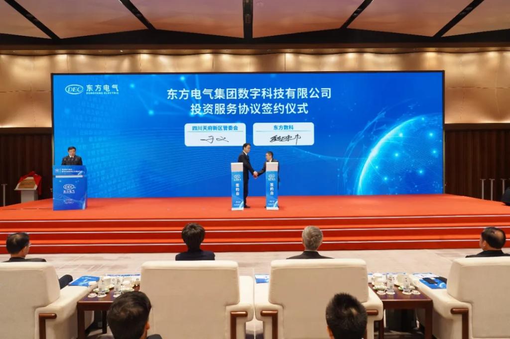 活動現(xiàn)場,東方數(shù)科與四川天府新區(qū)管委會簽署投資服務(wù)協(xié)議。
