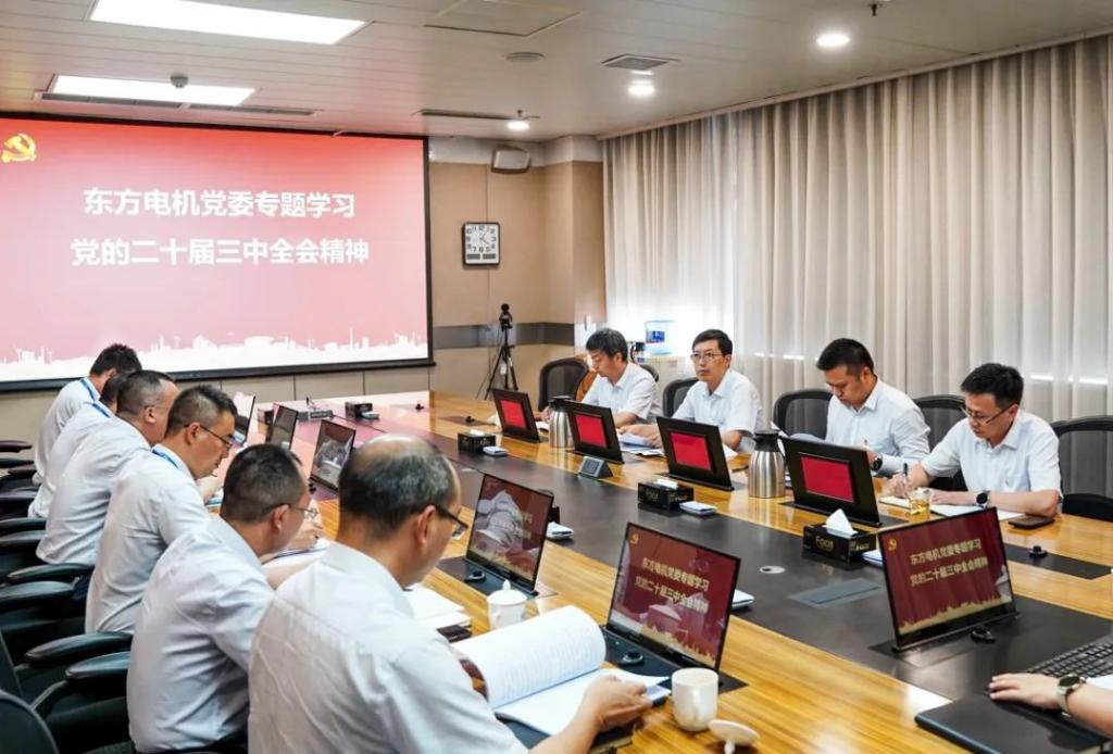 7月24日,東方電機(jī)黨委召開(kāi)專(zhuān)題會(huì)議,深入學(xué)習(xí)黨的二十屆三中全會(huì)精神,研究部署貫徹落實(shí)工作。東方電機(jī)黨委副書(shū)記、總經(jīng)理?xiàng)钣乐鞒謱?zhuān)題學(xué)習(xí),在家領(lǐng)導(dǎo)班子成員參加專(zhuān)題學(xué)習(xí)。