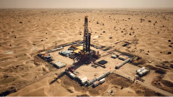 “地殼一號(hào)”萬米科研鉆機(jī)綜合技術(shù)水平達(dá)到國(guó)際先進(jìn)水平,填補(bǔ)了國(guó)內(nèi)空白,成為國(guó)際上第一口鉆穿白堊紀(jì)陸相地層的科學(xué)探井。圖為2024年10月,“地殼一號(hào)”萬米鉆機(jī)在新疆塔克拉瑪干沙漠里工作。