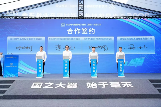 會(huì)上,東方精材分別與無錫帝科、杭州華光簽訂合作協(xié)議,綿竹市政府與東方研究院簽署合作協(xié)議,東方江峽產(chǎn)業(yè)投資、德陽投資控股集團(tuán)、四川綿竹高發(fā)投資集團(tuán)、東方研究院簽訂合作協(xié)議,江蘇瀚思瑞與四川綿竹高新技術(shù)產(chǎn)業(yè)園區(qū)簽訂合作協(xié)議。