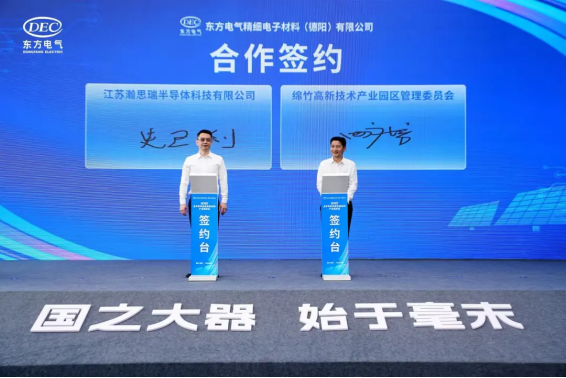 東方電氣集團(tuán)總經(jīng)理、黨組副書記張彥軍,德陽市委書記劉光強(qiáng),中國電子商會(huì)會(huì)長(zhǎng)王寧,東方電氣集團(tuán)總經(jīng)理助理、股份公司副總裁胡修奎,德陽市委常委、常務(wù)副市長(zhǎng)李江波,德陽市副市長(zhǎng)、綿竹市委書記王宏,綿竹市委副書記、代理市長(zhǎng)潘鵬,清華大學(xué)、浙江大學(xué)、四川大學(xué)、華潤(rùn)微電子控股有限公司、無錫帝科電子材料股份有限公司、杭州華光焊接新材料股份有限公司、福建省福東科技集團(tuán)有限公司、廣州市儒興科技股份有限公司、株洲中車時(shí)代半導(dǎo)體有限公司、隆基綠能科技股份有限公司、英特爾產(chǎn)品(成都)有限公司、蘇州創(chuàng)印電子科技有限公司、德陽投資控股集團(tuán)有限責(zé)任公司、四川綿竹高發(fā)投資集團(tuán)有限公司等相關(guān)領(lǐng)導(dǎo)專家出席大會(huì)。