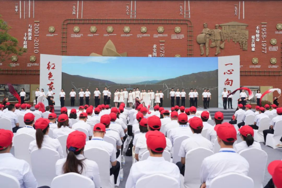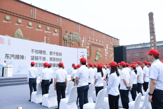 與會(huì)人員集體誦讀東汽精神并觀看文獻(xiàn)紀(jì)錄片《東方》之《勇攀高峰》,以《奮進(jìn)東方》表演展示凝聚團(tuán)結(jié)奮斗之力。
