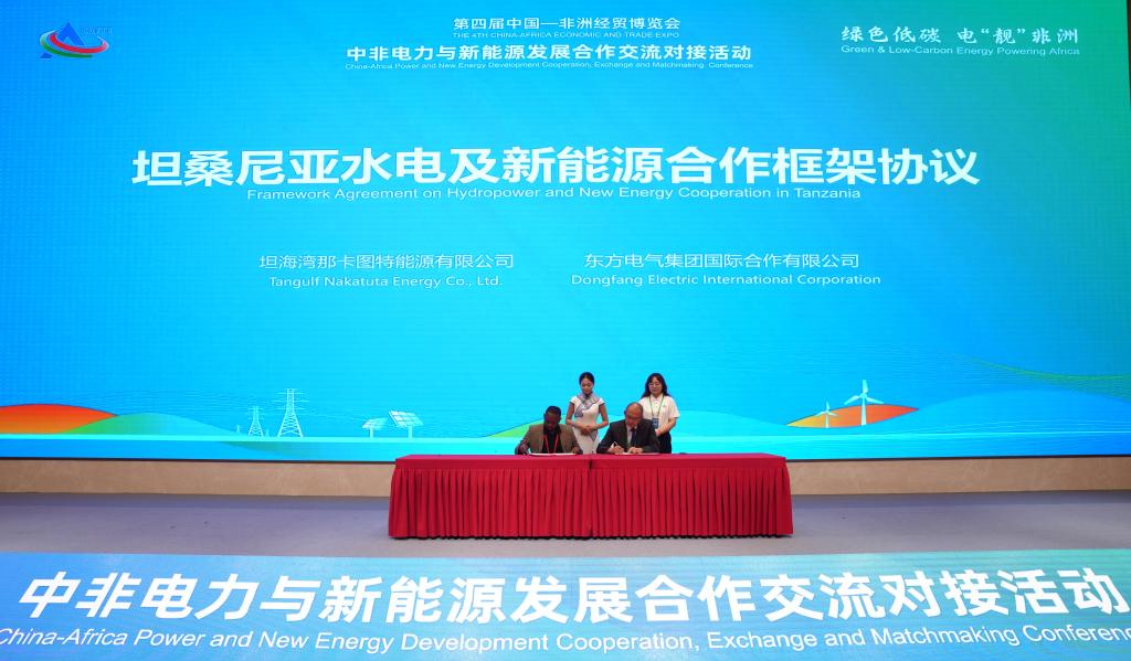 在成果發(fā)布及項目簽約環(huán)節(jié),東方國際與坦桑尼亞Tangulf Nakatuta Energy Company Limited(TANECO)公司簽署《坦桑尼亞水電及新能源合作框架協(xié)議》,雙方將發(fā)揮各自行業(yè)優(yōu)勢,助力非洲能源綠色升級。
