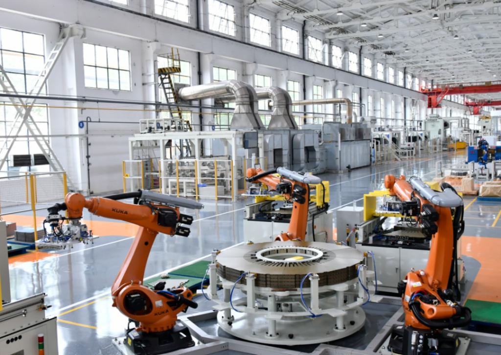東方電氣集團(tuán)以數(shù)字化引領(lǐng)綠色發(fā)展,堅持“產(chǎn)品智能化和制造智能化”雙輪驅(qū)動,加大工業(yè)機(jī)器人應(yīng)用力度,大力推進(jìn)綠色示范車間、綠色示范工廠創(chuàng)建,著力提高生產(chǎn)領(lǐng)域節(jié)能降碳水平。圖為行業(yè)首個定子沖片綠色“無人車間”。東方電氣集團(tuán)供圖