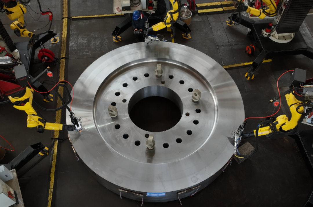 東方電氣集團(tuán)搶抓人工智能發(fā)展的歷史機(jī)遇,以“AI+賦能”為主線,加快推動產(chǎn)品智能化革新,推動全場景智能制造、全方位智慧運(yùn)營,不斷推進(jìn)產(chǎn)業(yè)發(fā)展和業(yè)務(wù)模式變革創(chuàng)新。圖為世界單機(jī)容量最大沖擊式水電機(jī)組轉(zhuǎn)輪首次實現(xiàn)機(jī)器人焊接。東方電氣集團(tuán)供圖